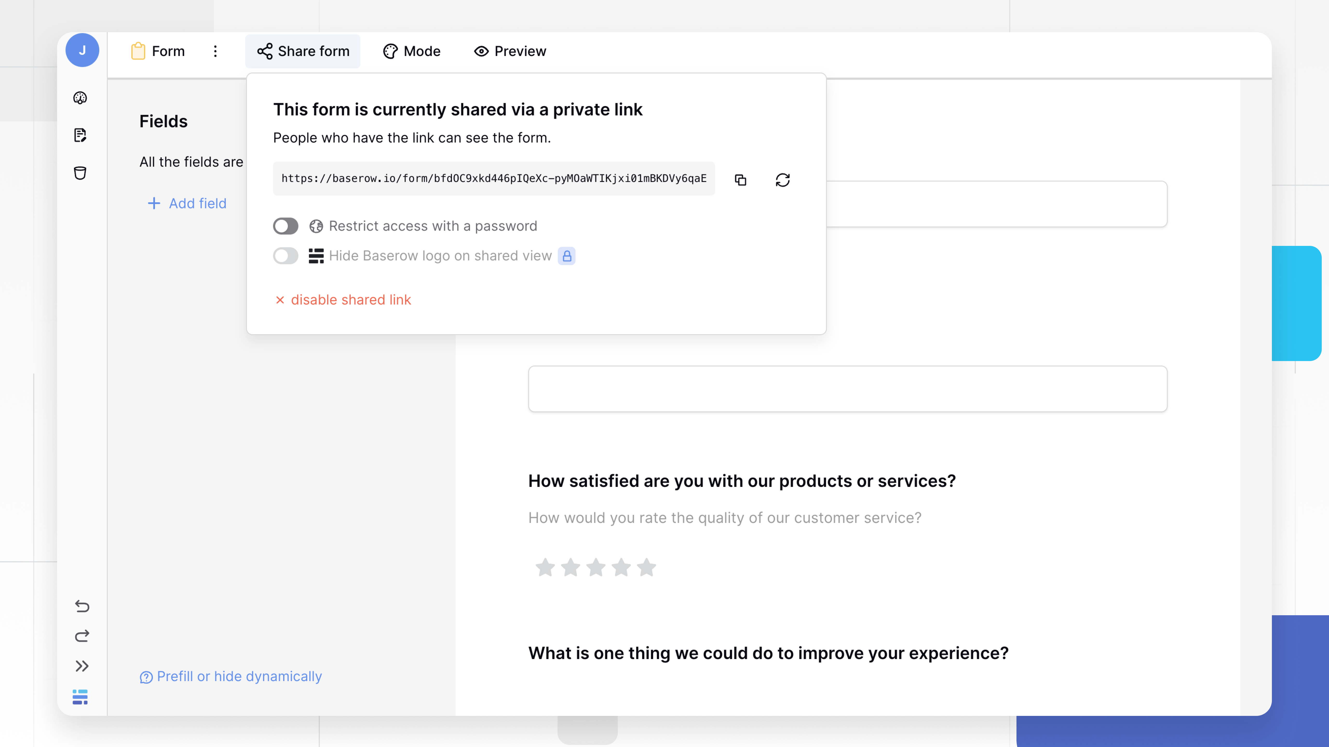 How to create a customer satisfaction (CSAT) survey in Baserow
